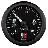Autometer Stack 52mm -30INHG to +30 PSI (Incl T-Fitting) Pro Stepper Motor Boost Press Gauge - Black
