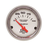 Autometer Ultra-Lite 2-1/16in Electric 100 PSI Oil Pressure Gauge Marine Chrome