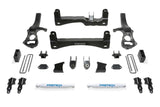 Fabtech?s Basic lift kit features our world renowned IFS suspension design for the Chevy/GMC 1500 2WD providing excellent drive ability both on and offroad. There is zero bump steer throughout the suspension cycle that helps reduce drive fatigue while improving the overall drive ability of the vehicle. The near stock track width keeps the tires under the fenders for a clean appearance. Fabtech?s proprietary steering knuckle geometry provides excellent lock to lock turning radius to maneuver in tight spots. Heavy duty 1/4? thick steel crossmembers feature OE style alignment cam pins that utilize the factory cams for easy adjustment. The factory coilover shocks are relocated from the bottom to allow for full steer while achieving 6? of lift. Rear lift is accomplished with a 5? Block and u-bolt system. Fabtech has addressed all aspects of the suspension for proper wheel travel and lock to lock steering without over cycling. Comes with a free 5 year 60,000 mile Powertrain Warranty. FEATURES: 1/4? thick steel lower control arm Crossmembers are arched for maximum ground clearance. The welded box design of these Crossmembers provides additional strength to the front suspension. Retains factory alignment cams for easy adjustment. Fabtech?s extended length ductile iron Steering Knuckles provide zero bump steer throughout the suspension travel. This provides an enhanced driver experience compared to stock. Near stock track width keeps the tires under the fenders for a clean appearance. Oversized tie rods are provided to replace the stock units that are designed to handle oversized tires. The factory Coilovers are relocated with heavy duty lower mounts to lift the vehicle while retaining the stock ride quality. 1/4? thick steel drop brackets reposition the front sway bar for the increased ride height. This allows the sway bar link ends to fully cycle without binding throughout the extended travel range. Billet spacers relocate the factory closed cell bump stops to c