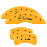 MGP 4 Caliper Covers Engraved Front Cursive/Cadillac Engraved Rear CTS Yellow finish black ch