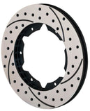 SRP Drilled Performance Rotors feature a specially engineered directional cross drill and face slot pattern that improve brake response and pad performance throughout the entire range of light to heavy braking. The venting and cleaning action of the holes and slots will reduce pad glaze and disperse gasses and heat generated during the pad to rotor interface. The holes and slots also inhibit irregular pad compound build-up on the rotor faces resulting in smoother engagement and improved pedal response in all conditions. The material removed also contributes to lower rotating and unsprung suspension weight.
